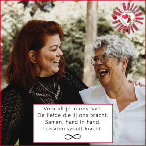 Ik heb ook heb ik het momenteel echt loodzwaar, dus ik moet mezelf overeind houden met dat wat we samen deden: Loslaten vanuit kracht! Dat is wat mama en wat wij gedaan hebben en dat is wat ik nu als mantra tegen mezelf blijf zeggen.